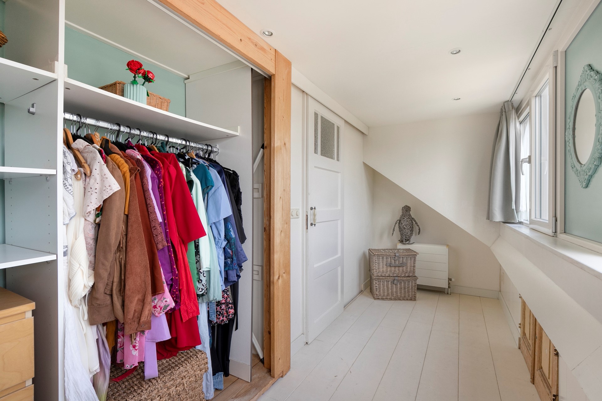 Via een vaste trap loopt u naar een verrassend sfeervolle en grote tweede verdieping! Zo ziet u ze zelden! Twee (slaap)kamers, twee dakkapellen met kunststof kozijnen en elektrisch bedienbare rolluiken. Op de gehele verdiepingsvloer wit gelakte houten vloerdelen. Op de overloop staat de witgoedopstelling, CV-opstelling en MV-box verdekt opgesteld in een grote inpandige kast welke ook bereikbaar is via de slaapkamer. De wanden en het plafond zijn keurig glad gestuct en voorzien van dimbare halogeen inbouwspots! De slaapkamer aan de voorzijde heeft een stijlvolle inpandige kast met schuifdeuren die voor u achterblijft. De slaapkamer aan de achterzijde wordt nu gebruikt als luxe walk in closet die ook voor u achterblijft. Leuk detail en efficiënt in de ruimte is de vintage schuifdeur. Beide kamers hebben vintage uitgevoerde knieschotten die te benutten zijn als bergruimte.