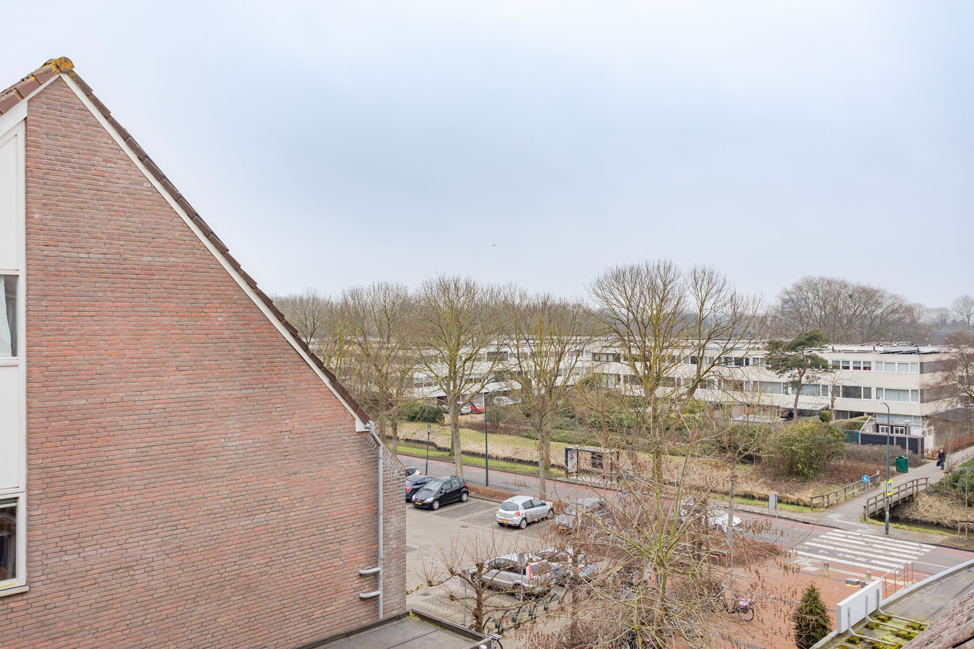 3e Slaapkamer – leuke kamer met recht opgetrokken en gestuukte wanden en 1 wand is speels met hout bekleed. Naast de raampartij met een raam wat open kan, is er een deur naar het ruime balkon waar de zon zich tot in de middag laat zien en je ver kan wegkijken.