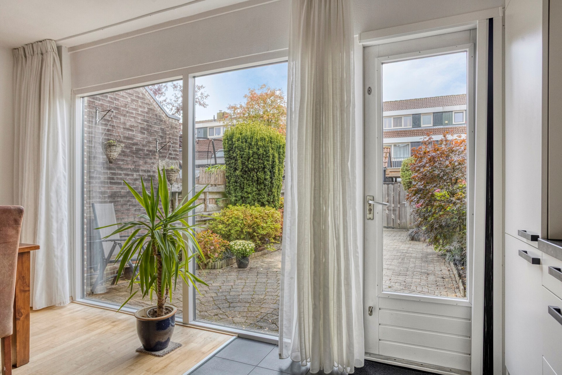 Bij de keuken zit de tuindeur met een plissé-hor.