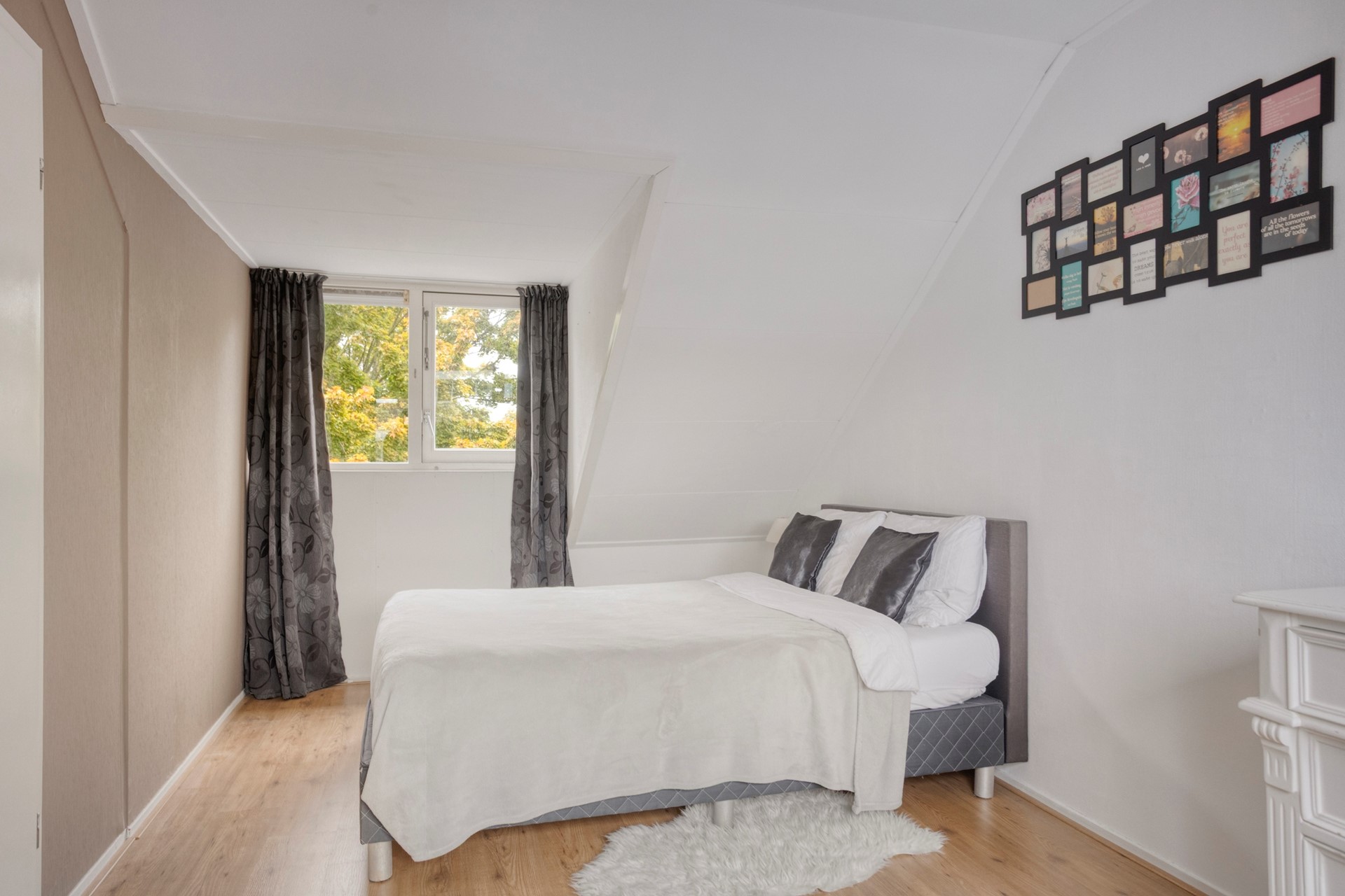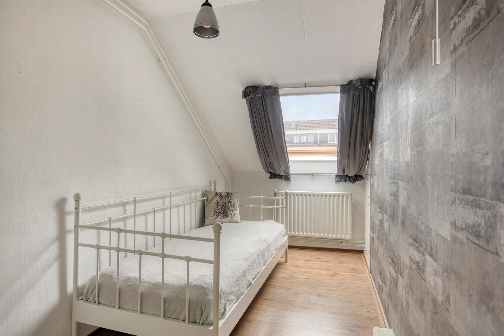 2e Slaapkamer achterzijde – leuke afmeting kamer met een Velux dakraam en een deurtje met toegang tot bergruimte.