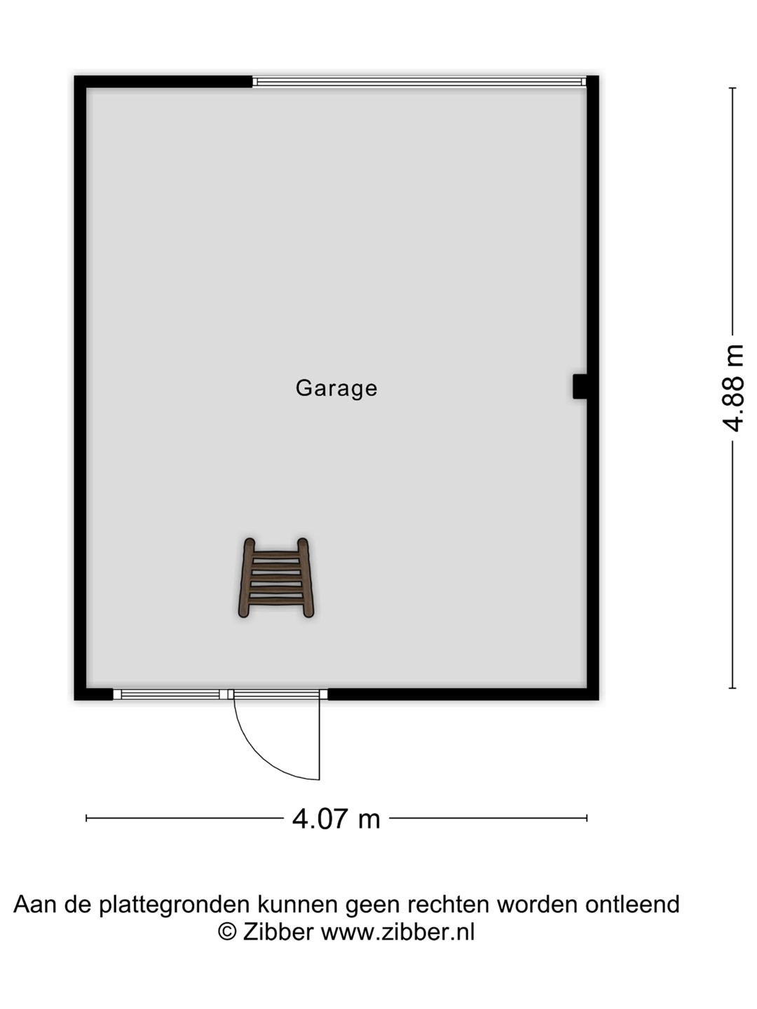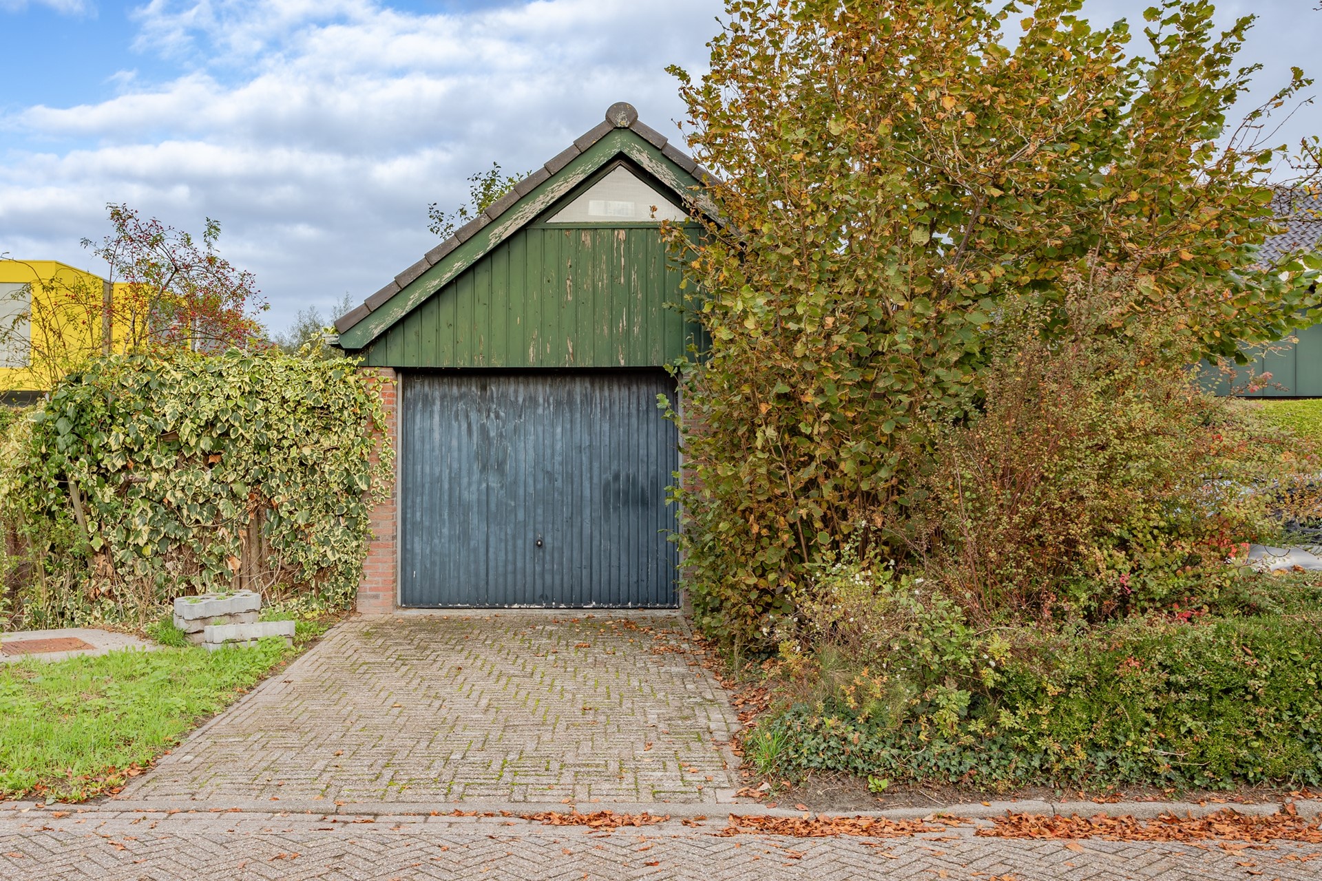 Rond 1995 is de garage met verdieping en pannendak gebouwd, de garage is enkelsteens gemetseld en voorziet in een buitenkraan, elektrisch te bedienen deur, verlichting, stopcontacten en een enorme wegzetzolder met raam voor direct lichtinval. De wegzetzolder is met een losse trap te bereiken maar voor het gemak zou er een vlizo- of vaste trap geplaatst kunnen worden.