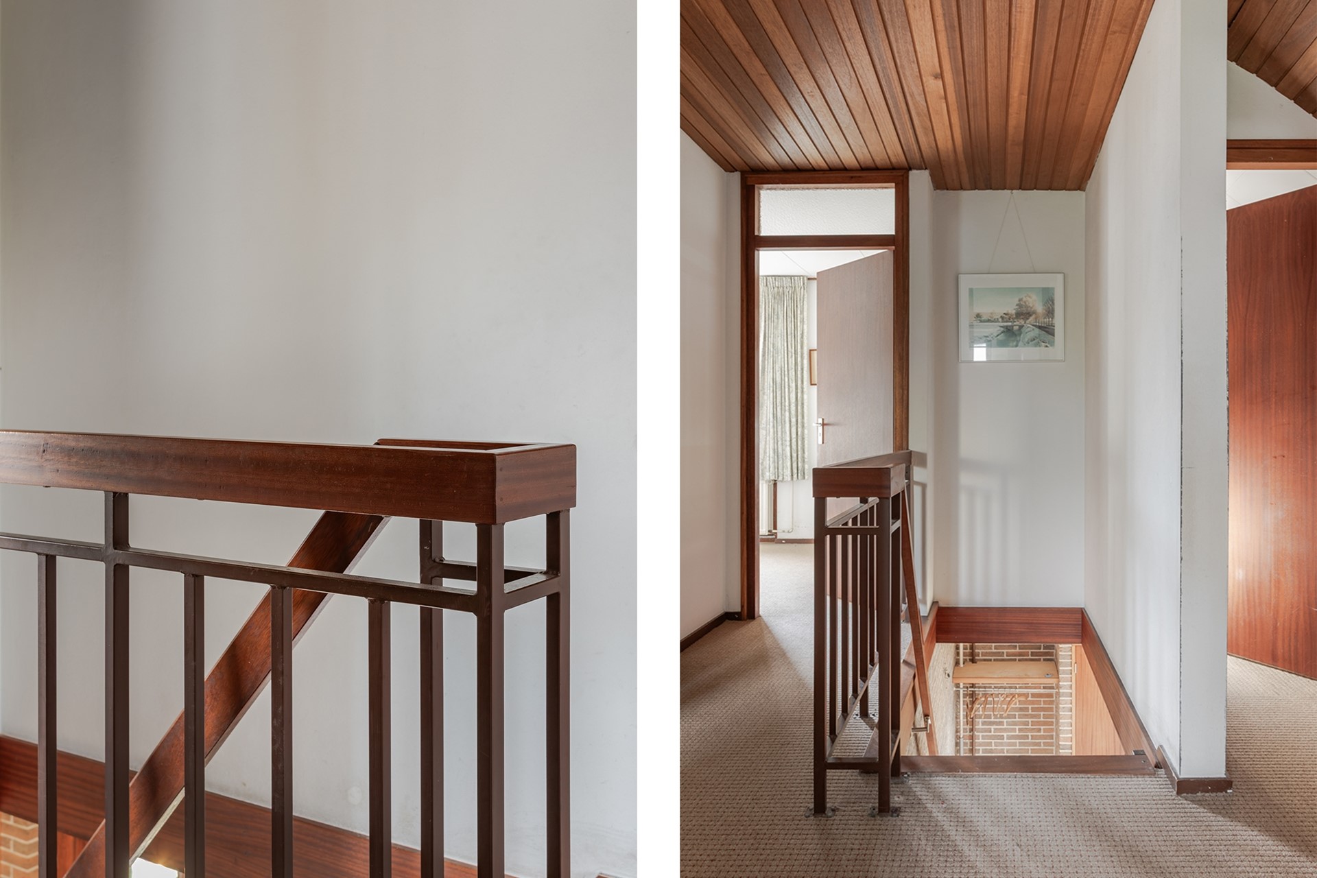 Vanuit de hal geeft de trapopgang toegang tot de slaapverdieping met een betonnen verdiepingsvloer. Op de overloop ligt vloerbedekking wat in alle kamers is doorgelegd en vanaf de overloop is de zolderverdieping met een uitschuiftrap te bereiken.