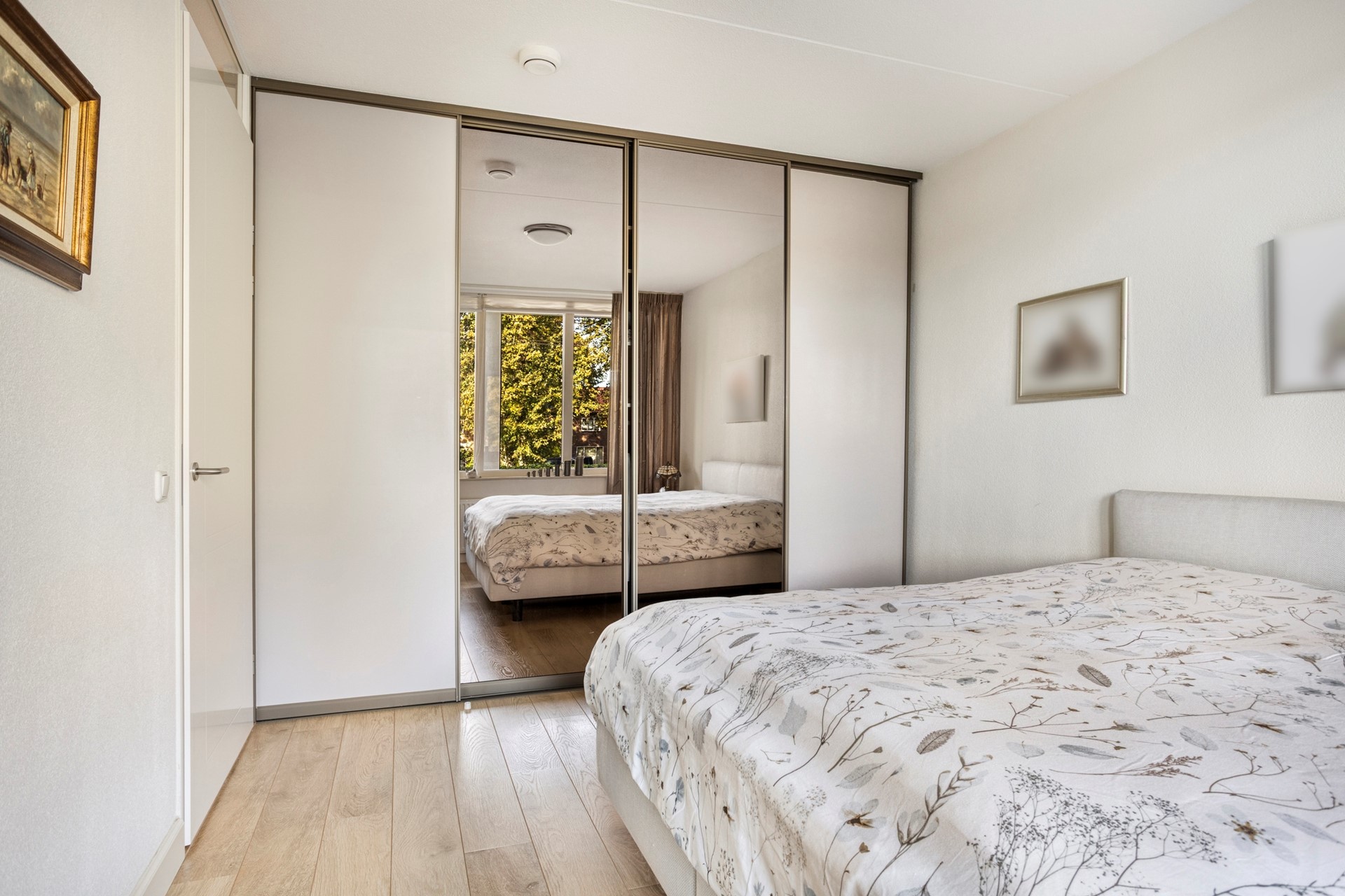 Aan de voorzijde, de koele kant van het appartement, bevinden zich de twee slaapkamers, beide van prima formaat. De grootste slaapkamer is voorzien van een inbouw(schuif)kast met rookglas-spiegeldeuren.