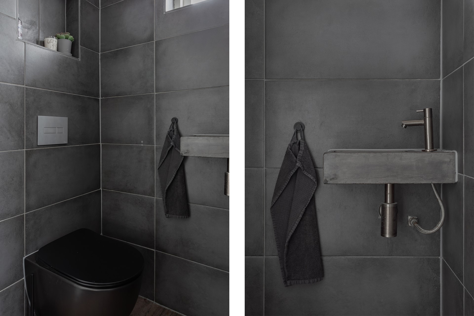 Er is een centraal afzuigsysteem en een brede raampartij met draai/kiepraam en een ventilatierooster in het vaste raam voor de natuurlijke ventilatie. Ook hier voorzien van HR++ en bewerkt glas in een kunststof kozijn.