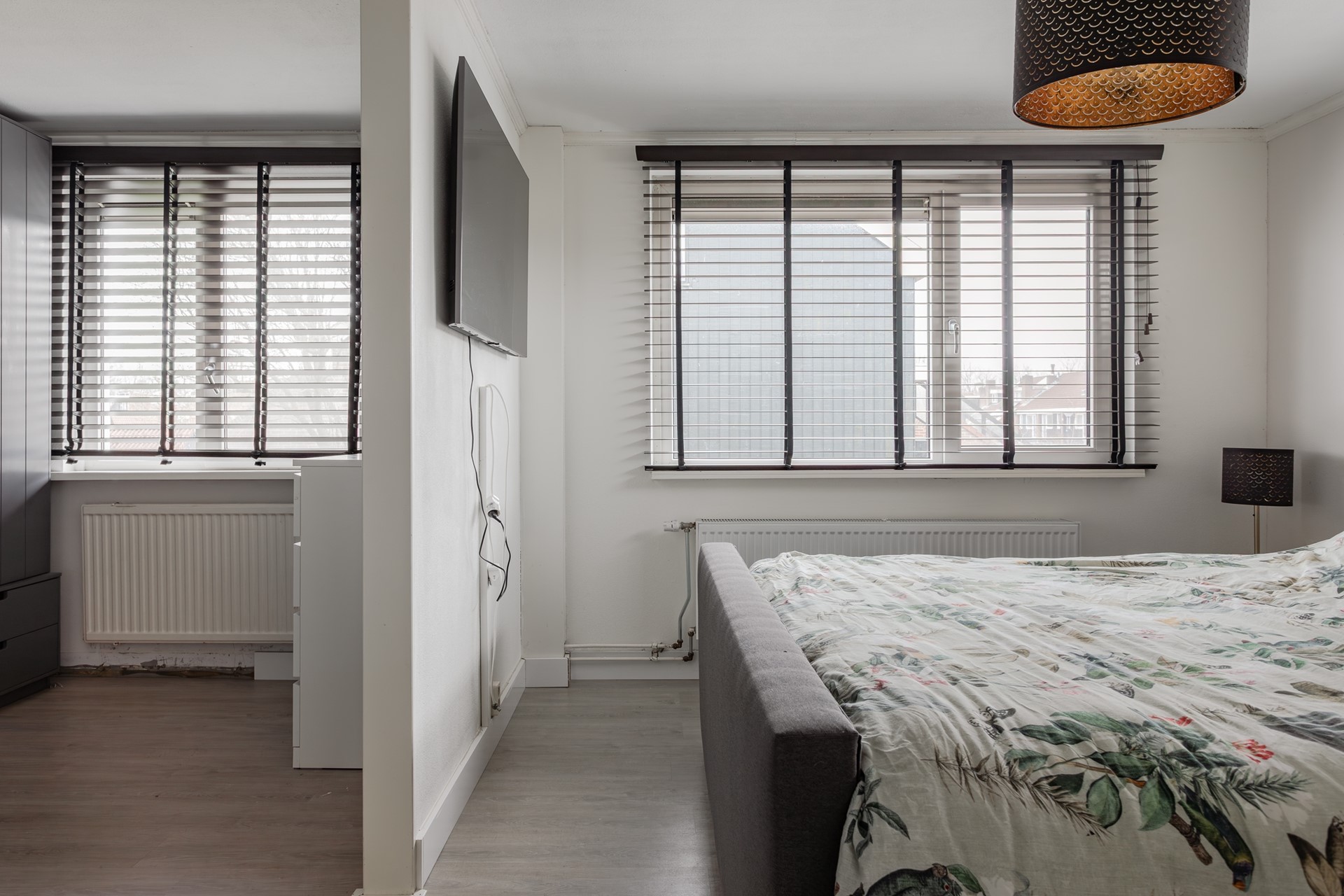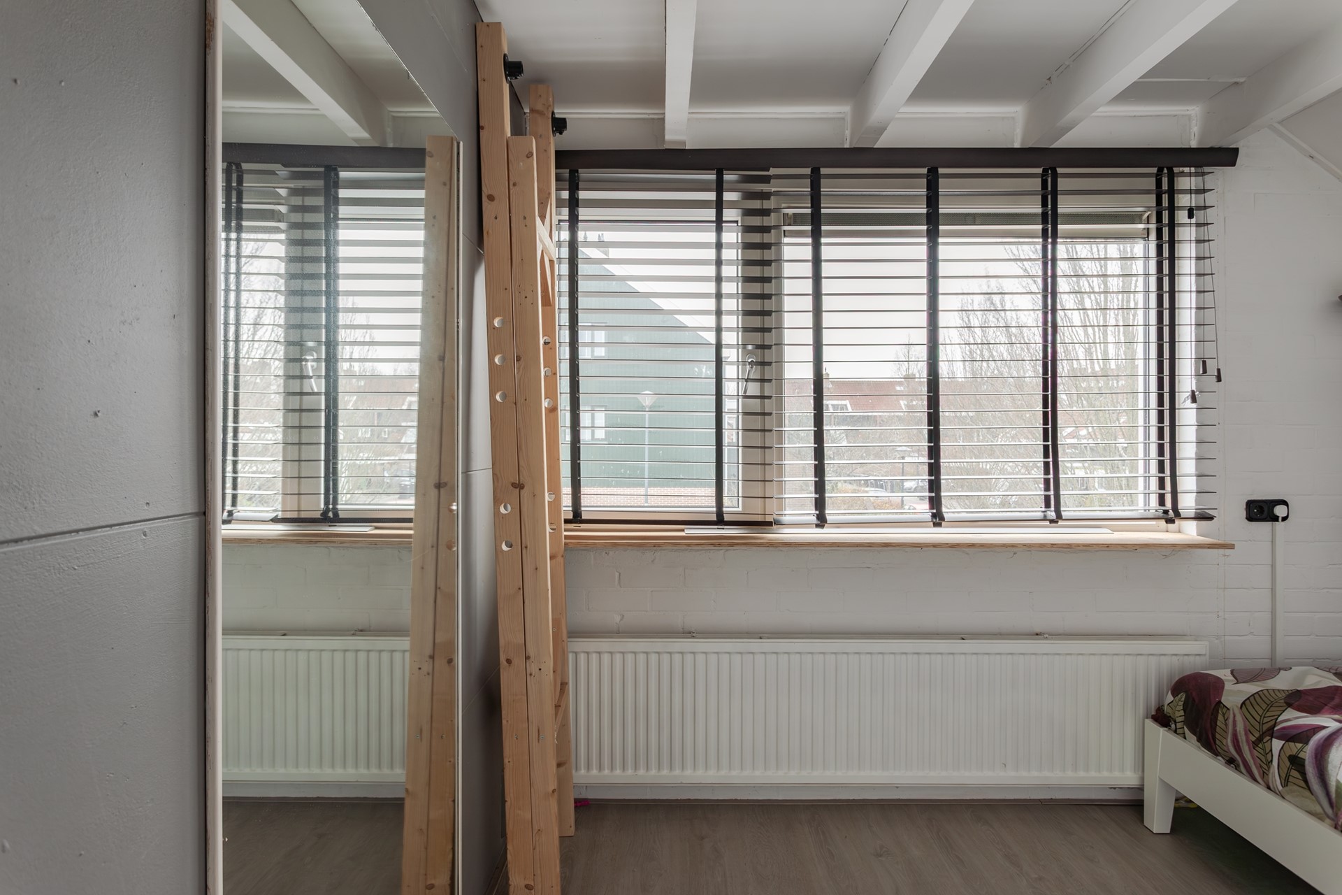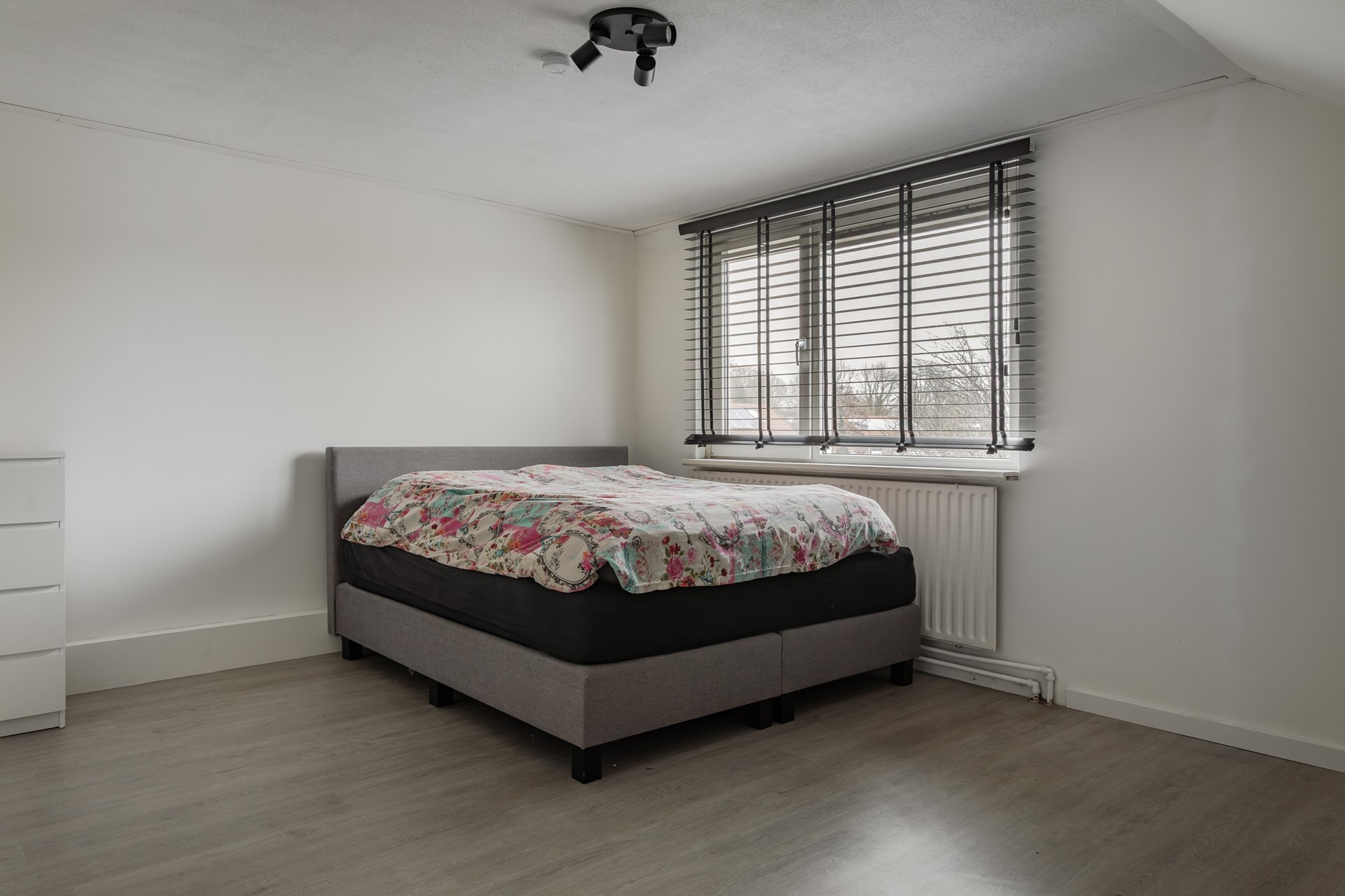 2e Slaapkamer – leuke afmeting kamer met recht opgetrokken en gestuukte wanden, dito plafond, kunststof kozijn met HR++ glas, een draai/kiepraam met hor en ventilatierooster in het vaste raam.