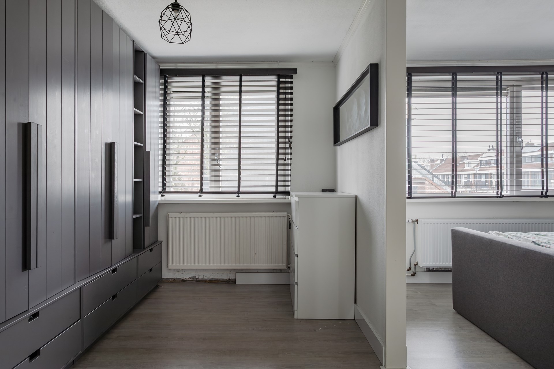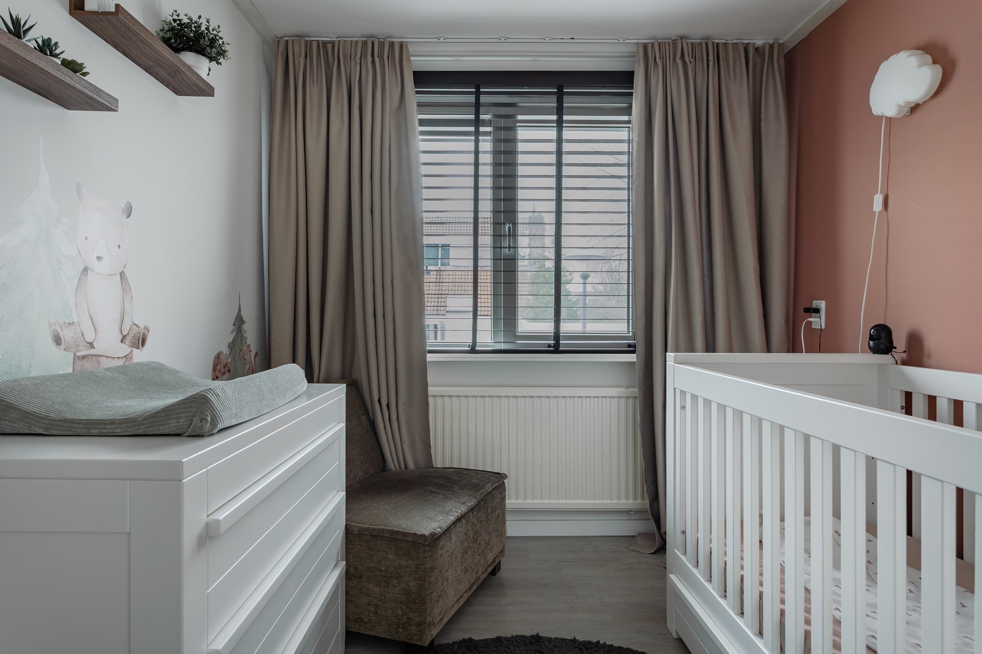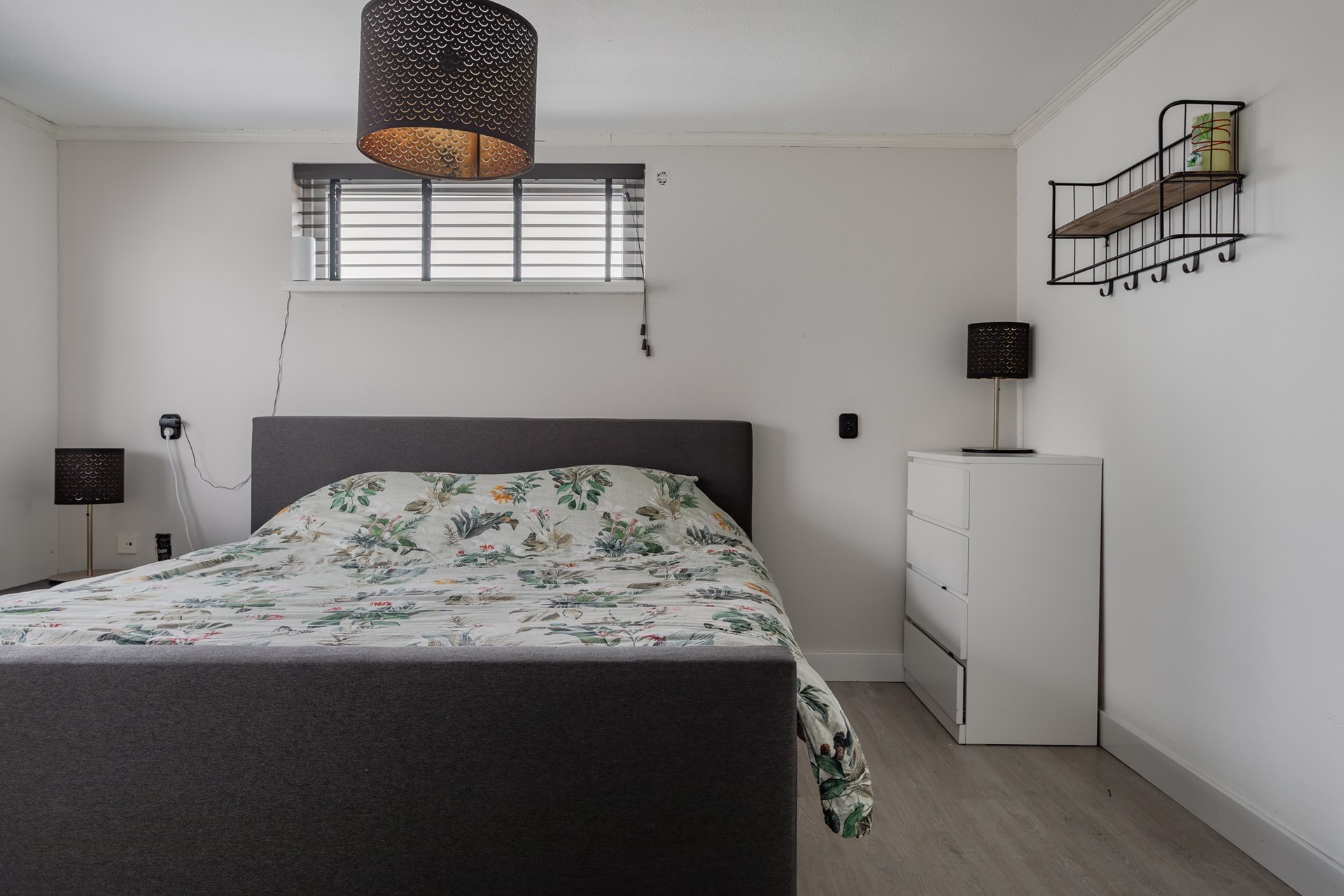 2e Slaapkamer – leuke afmeting kamer met recht opgetrokken en gestuukte wanden, dito plafond, kunststof kozijn met HR++ glas, een draai/kiepraam met hor en ventilatierooster in het vaste raam.