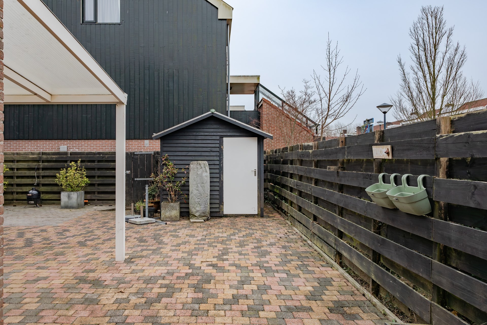De zonnig gelegen en hele ruime tuin is geheel bestraat en hier kunt u de hele dag van de zon genieten, ook de avondzon! Bij de schuifpui is een grote overkapping geplaatst met geïntegreerde verlichting op een dimmer dus ook als het donker is zit u hier heel gezellig! In de schutting is een deur naar het achterom en voor de tuinspullen is er een houten berging voorzien van verlichting en stopcontacten.