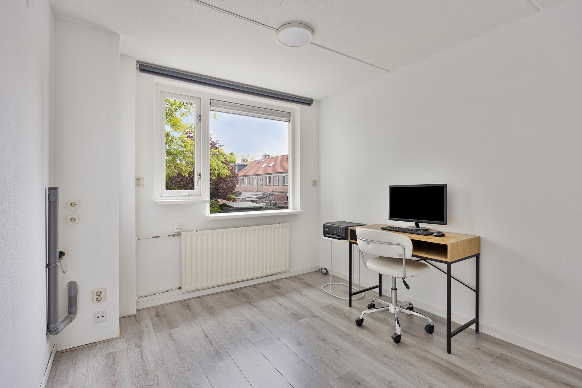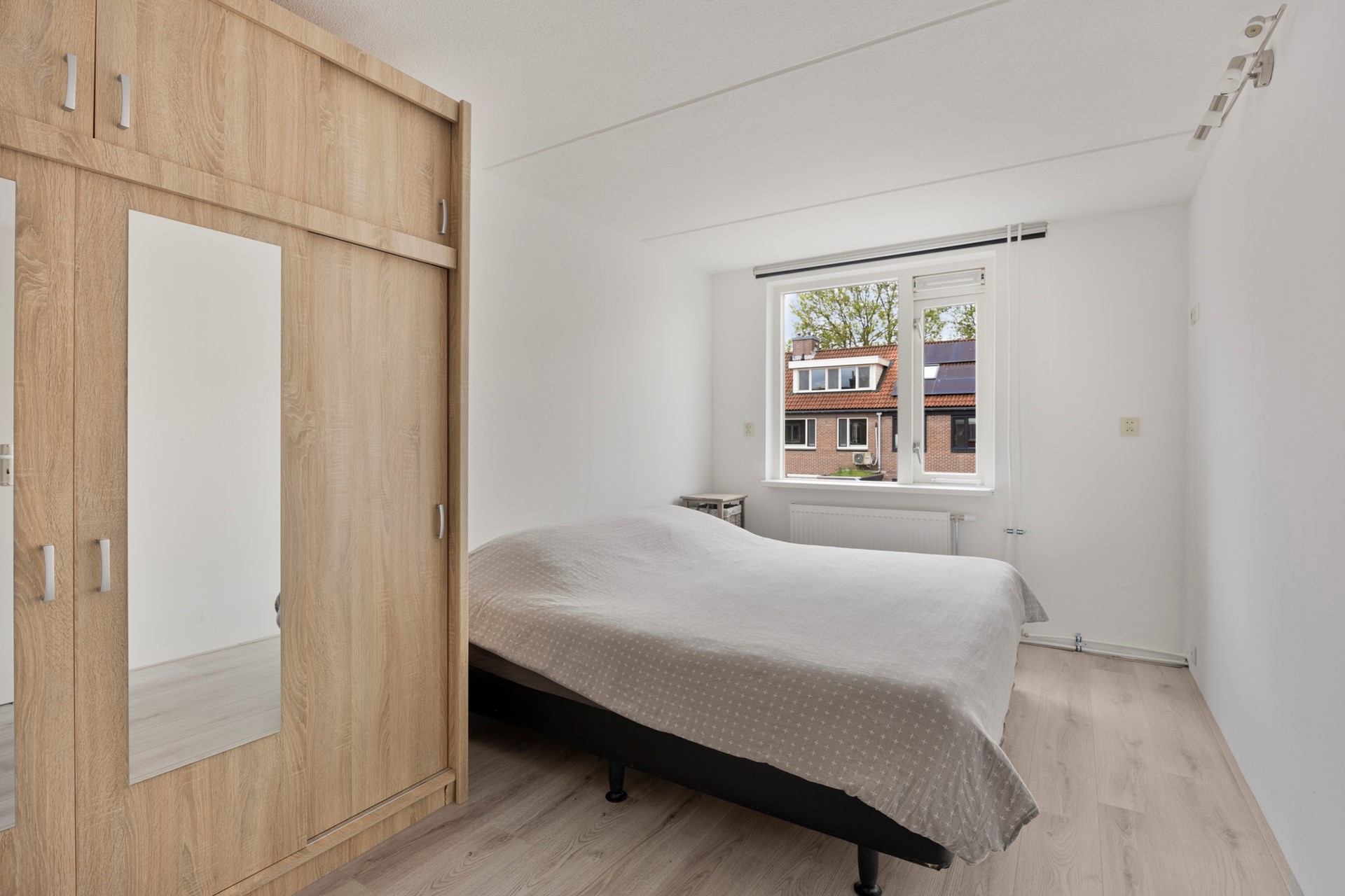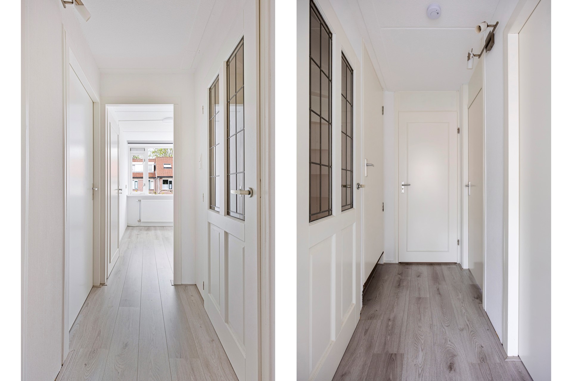 Via de spiltrap bereikt u de keurige eerste verdieping. Deze is in 2025 voorzien van nieuw laminaat, doorgelegd in alle drie de slaapkamers en de overloop. De deur naar de eerste verdieping heeft leuke glas-in-lood-ramen. Alle ramen in de slaapkamers zijn in 2024 voorzien van HR++ beglazing. Kortom, inrichten en slapen maar!