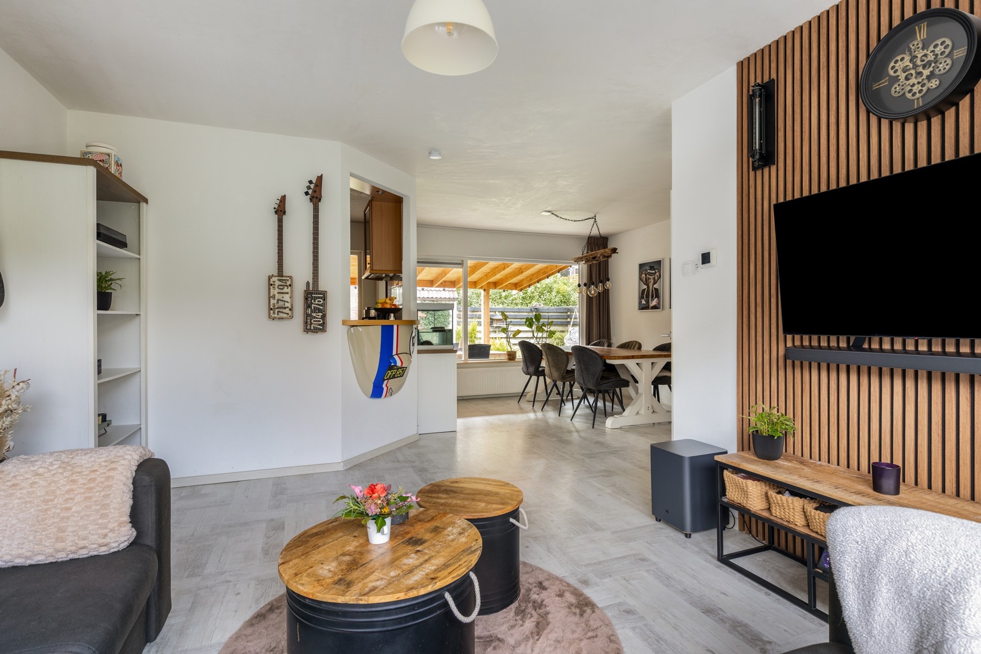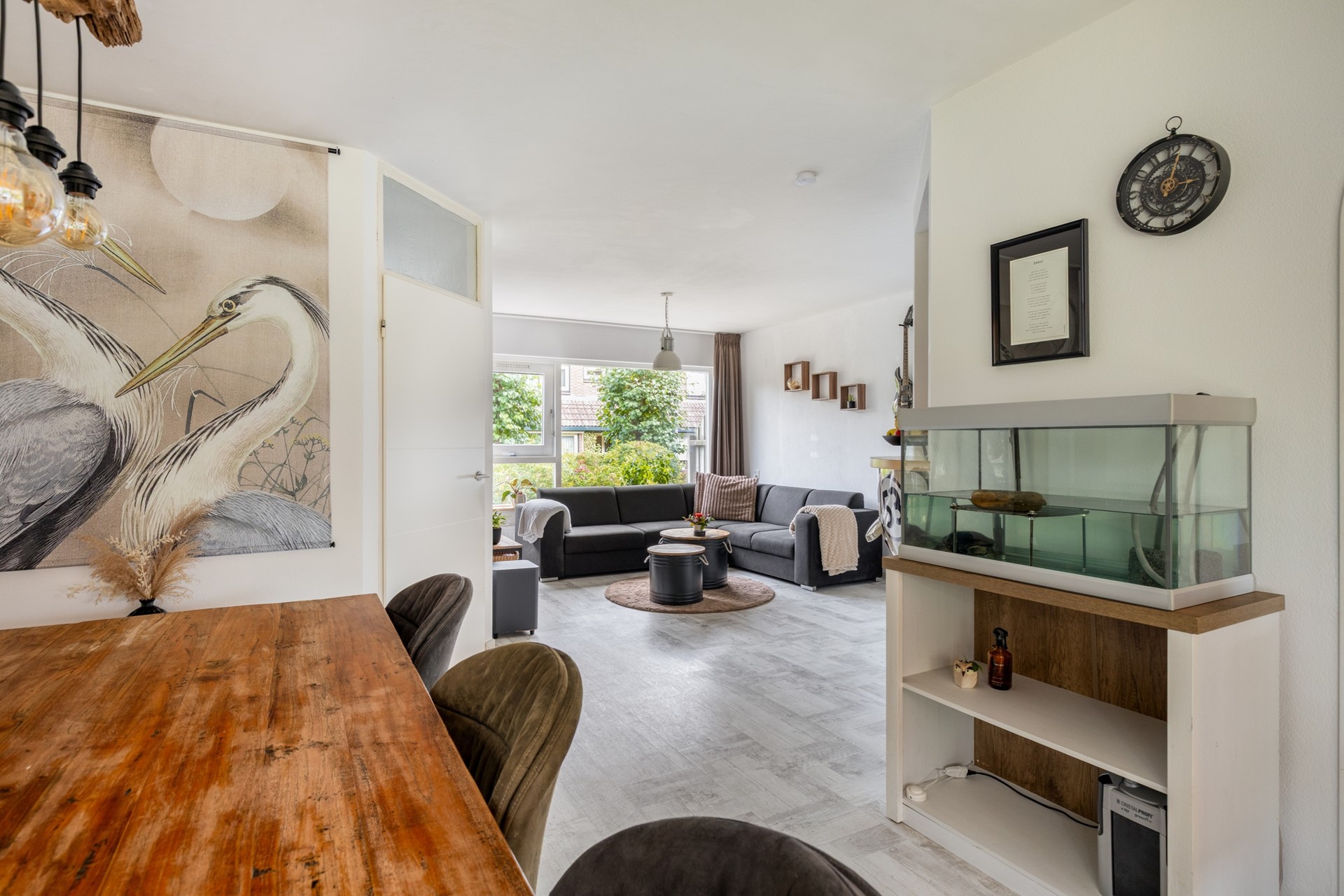 Weer eens wat anders, een Z-vormige living, waardoor u twee aparte gedeeltes heeft. Aan de voorzijde is een gezellige ruimte voor uw zithoek. Aan de achterzijde heeft u meer dan voldoende ruimte om een grote eettafel te plaatsen. Bovendien mooi uitzicht uw tuin in, waar onder andere een prachtige Japanse esdoorn staat te shinen! Op de vloer ligt een nette laminaatvloer. Het plafond is glad gestuukt.