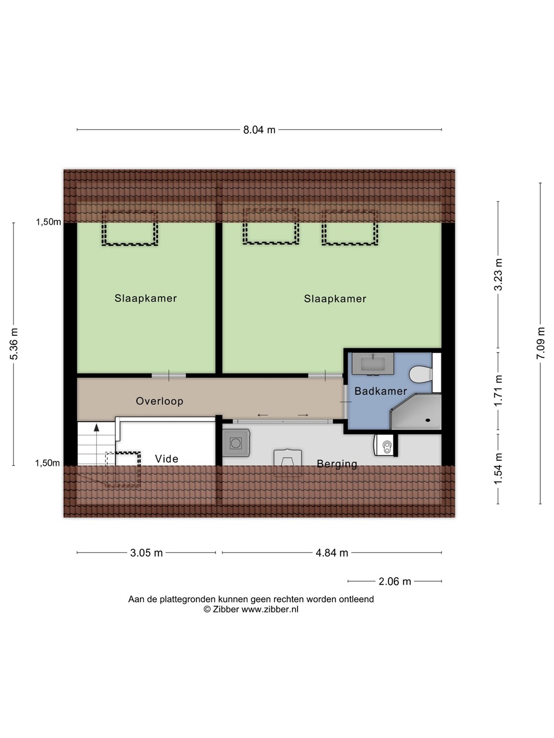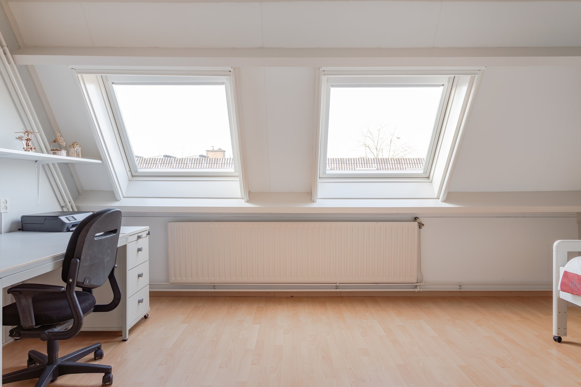 3e Slaapkamer – echt een hele riante kamer waar indien gewenst zelfs 2 kamers gerealiseerd kunnen worden. Maar een royale kamer is ook wel fijn!!! Ook in deze kamer is een laminaatvloer gelegd en veel lichtinval door de 2 grote Velux ramen met verduisteringsgordijnen en horren.