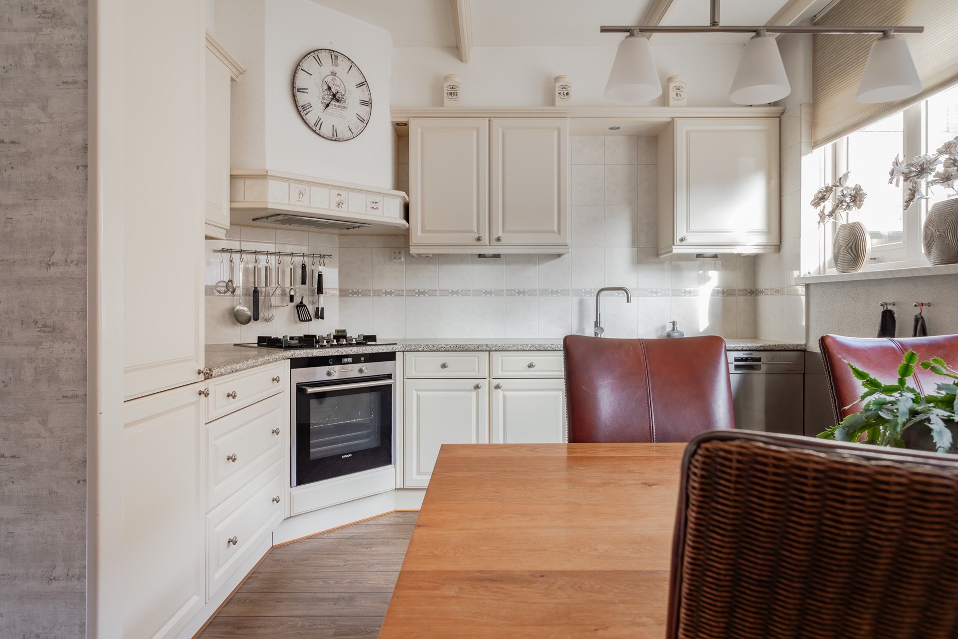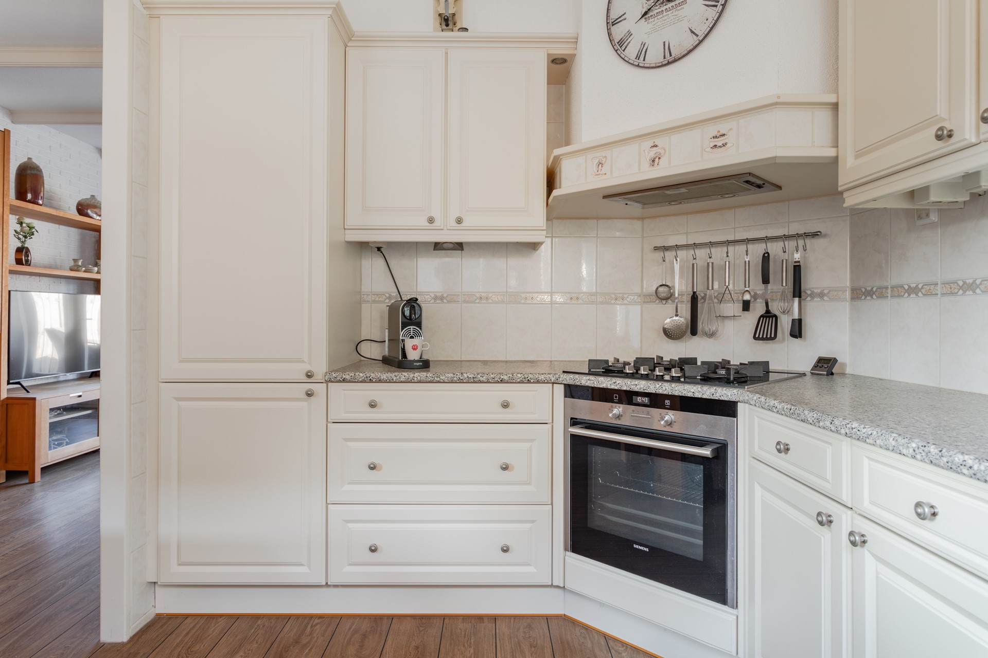 1½ spoelbak, laden, kastjes en bovenkastjes met bladverlichting. Vrijwel alle apparaten zijn in de afgelopen jaren vervangen, te weten: vaatwasser, 4 pits gaskomfoor op een glasplaat, groot formaat heteluchtoven met grill-functie, afzuigkap en de koel/vriescombinatie.
